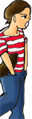 Trina Daywood (14). Trina loves “young, hip” knitting, playing elaborate games with Ferrari, comic books, and the beach. She’s always been an aggravatingly inquisitive kid, but a happy childhood didn’t give her much to lash out at, so she’s only just discovering her ability to subvert authority. She’s motivated by wildly grand schemes that she pours all of her energy into … until she gets bored.