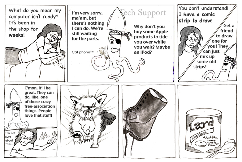 True story. Grr. Thanks to Platypus for the guest strip! Hey, if you haven’t checked the fan art page lately you should do that too.